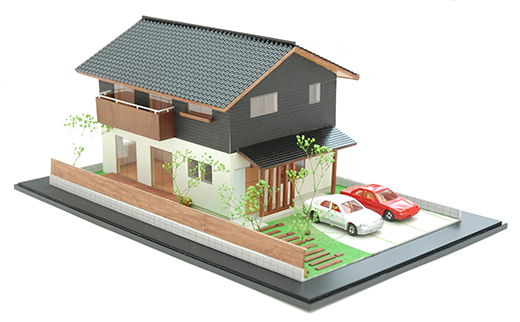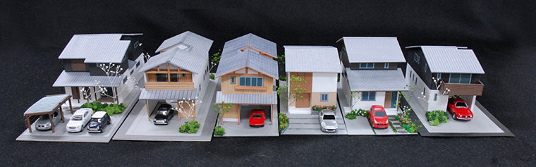 「雨楽な家・景」豊田モデルハウスには、これまで建てた「雨楽な家」の外観模型があります。