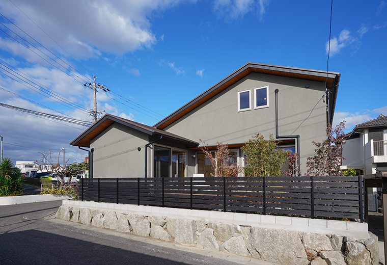 この写真の外観は、これまで建ててきた「雨楽な家」モデルハウスの一部です。